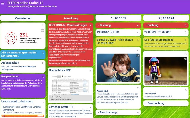 ab sofort können Sie verschiedene Veranstaltungen der Eltern-Online-Reihe (Staffel 12: Oktober bis Dezember…