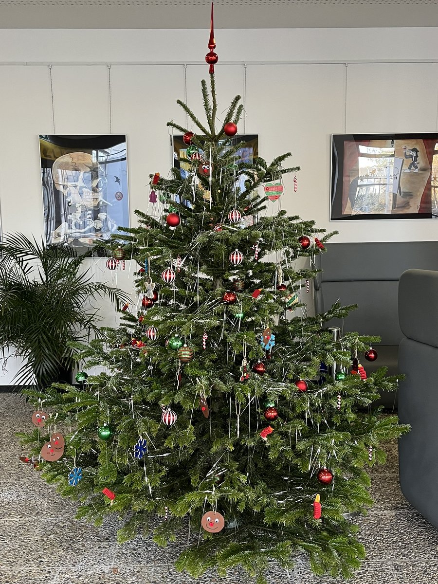 • In der Schule selbst sorgte die Klasse 5a für eine festliche Atmosphäre, indem sie den Weihnachtsbaum liebevoll schmückte.