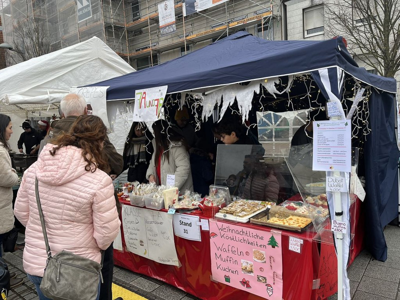 • Auch die Klassenstufe 7 war auf dem Weihnachtsmarkt vertreten und verkaufte mit großem Engagement Crêpes, Waffeln, Kuchen und Selbstgebasteltes.