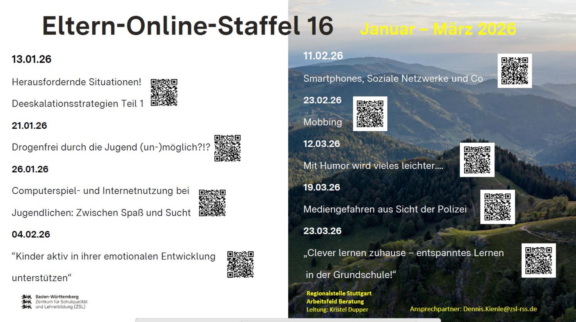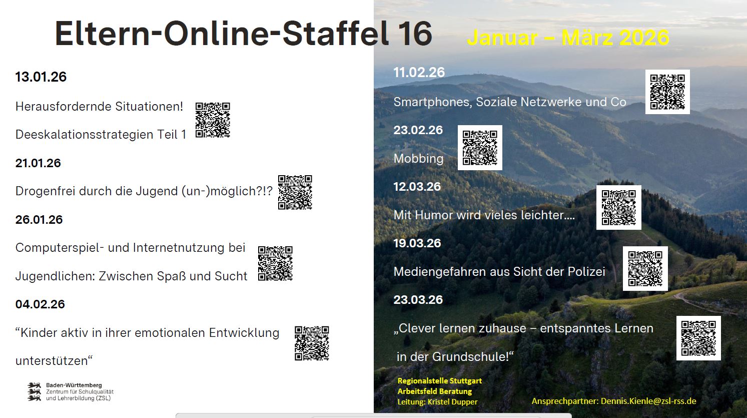 ab sofort können Sie an verschiedenen Veranstaltungen der Eltern-Online-Reihe (Staffel 16: Januar bis März 2026) teilnehmen.