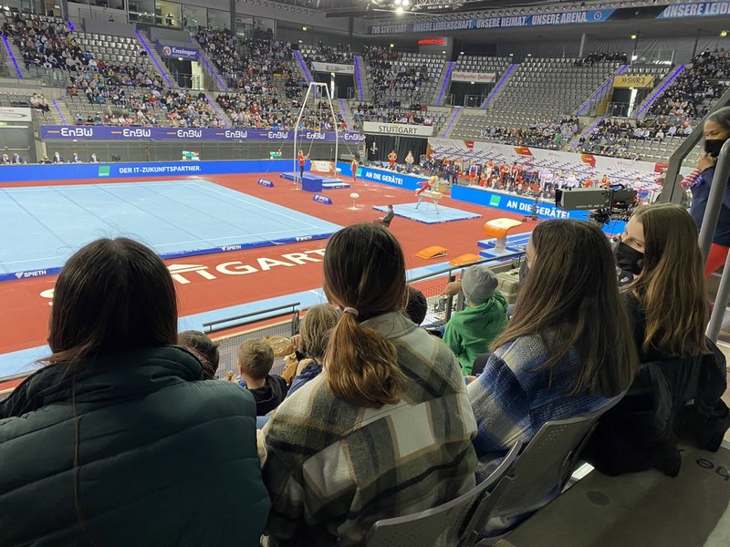 Endlich war es soweit! Einige turnbegeisterte Schülerinnen und Schüler unserer Realschule haben die Chance genutzt, die weltbesten Turner einmal live zu erleben. Am Freitag, den 18. März 2022 ging es mit den öffentlichen Verkehrsmitteln zur Porsche-Arena nach Stuttgart. Dort stand an diesem Vormittag die Team Challenge der Junioren Männer aus verschiedenen Ländern an. Neben den jungen deutschen Turnern wie Gabriel Eichhorn feuerten wir auch Turner aus anderen Ländern wie z.B. Spanien und der USA an. Sie begeisterten uns an den verschiedenen Geräten mit Überschlägen über das Pauschenpferd, der Riesenfelge am Hochreck, mit Schrauben am Boden, dem Kreuzstütz an den Ringen und Saltos am Barren. Die Stimmung in der Halle war am Schulaktionstag durch die Teilnahme von über 3000 Schülerinnen und Schüler einfach gigantisch. Den Countdown zählen, mit Papierklatschen die Turner anfeuern und die Weltstars so nah zu erleben, war ein unvergessliches Erlebnis. Wir freuen uns schon auf nächstes Jahr!